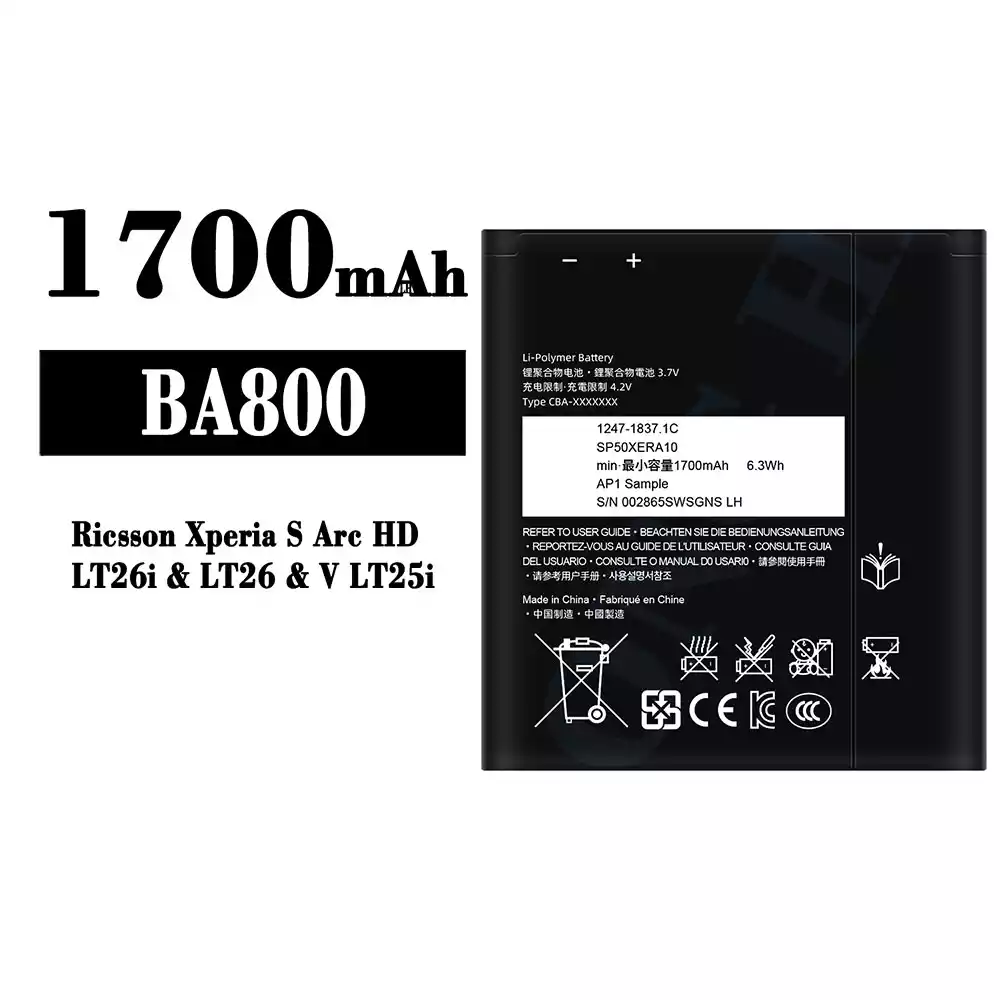 Batteri BA800 til Sony Ricsson Xperia S Arc HD / LT26i / V LT25i / LT26