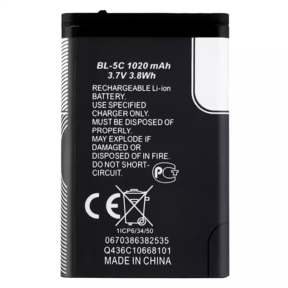 Batteri BL-5C til Nokia Nokia 1101 / 1100 / 1110 / 1110i / 1112 / 1200 / 1208 / 1280 / 1600 / 1650 / 2310 / 2600 / 2700 / 3100 / 3110 / 3120 / 5130 / 6030 / 6230 / 6230i / E50 / E60 / N70 / N71 / N72
