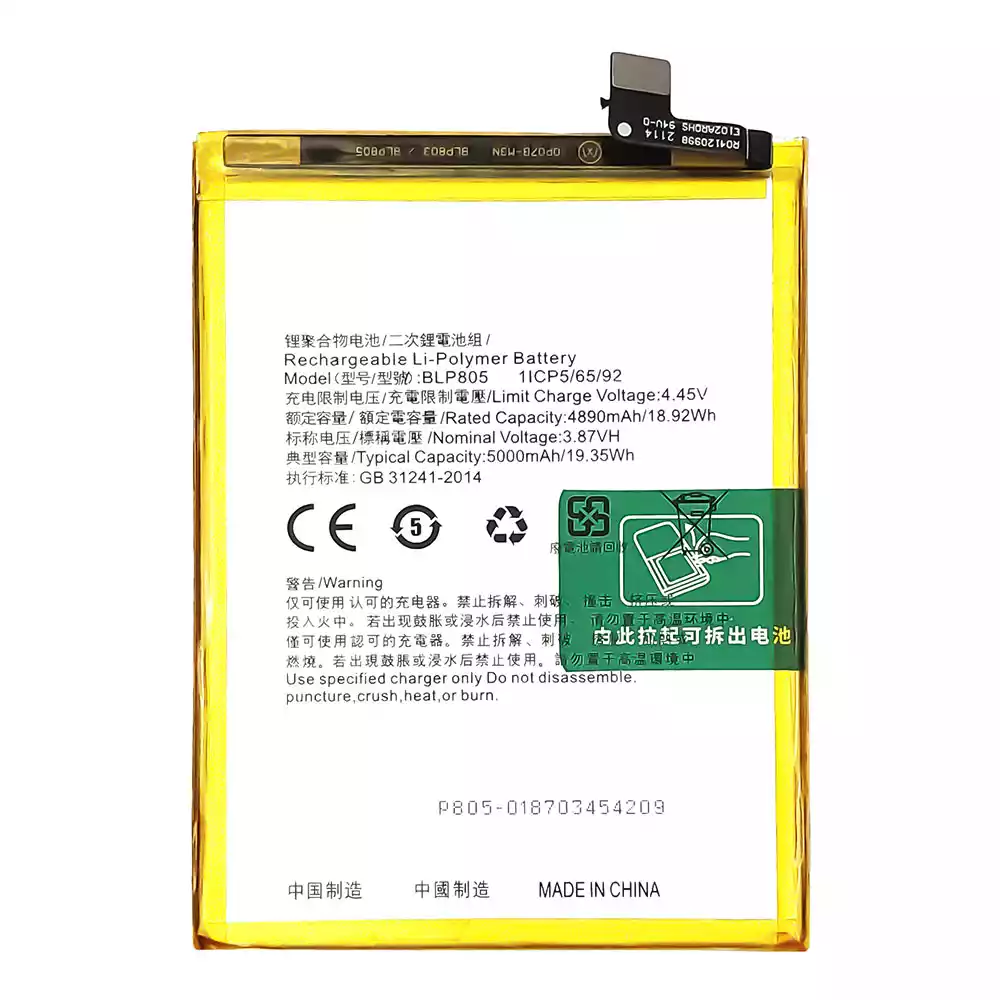 Batteri BLP805 til OPPO til A16 / A16S / A32(2021) / A53 2020 / A54 / A54 4G / A74 5G / A53S / A54S / A33 2020 / A93 5G / A55(2020)