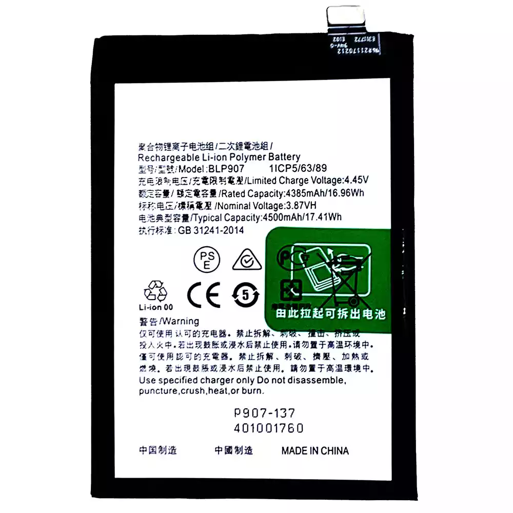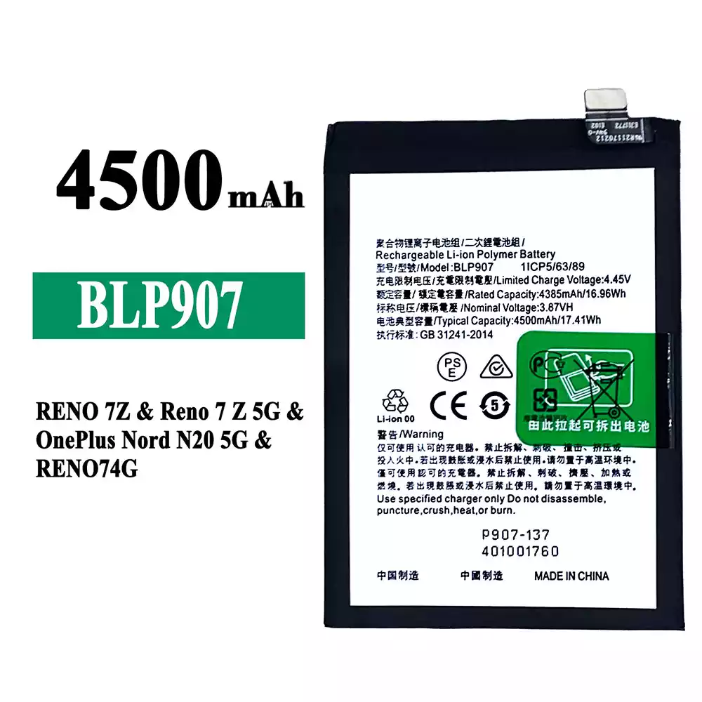 Batteri BLP907 til OPPO RENO 7Z / Reno 7Z 5G / OnePlus Nord N20 5G / RENO 74G / RENO 8 4G