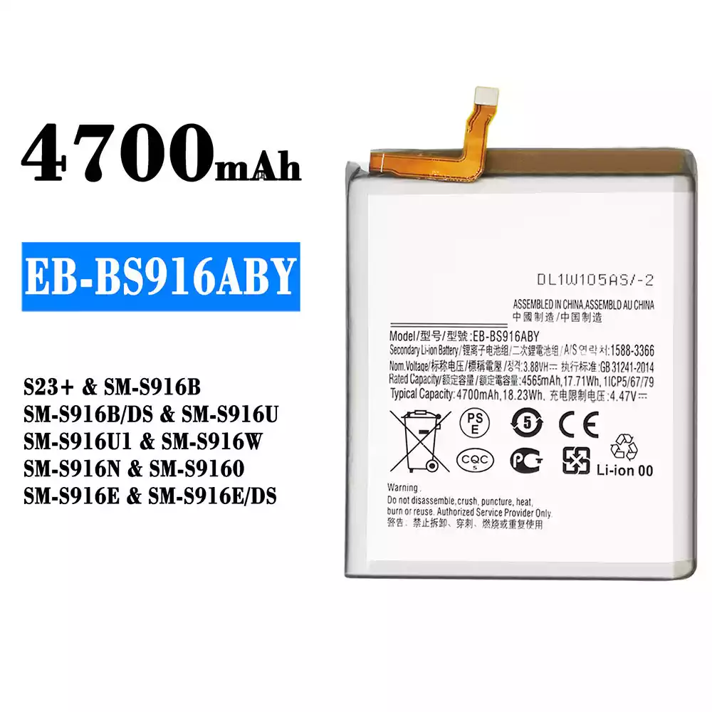 Batteri EB-BS916ABY til Samsung S23+/SM-S916B/SM-S916B DS/SM-S916U/SM-S916U1/SM-S916W/SM-S916N/SM-S9160/SM-S916E/SM-S916E DS