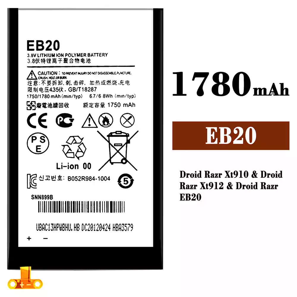Batteri EB20 til Motorola Droid Razr Xt910 / Droid Razr Xt912 / Droid Razr EB20