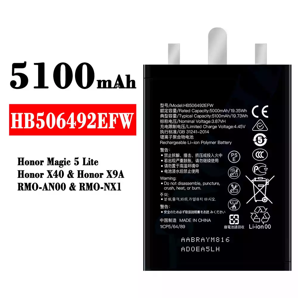 Batteri HB506492EFW til HUAWEI Honor Magic 5 Lite / Honor X40 / Honor X9A / RMO-AN00 / RMO-NX1