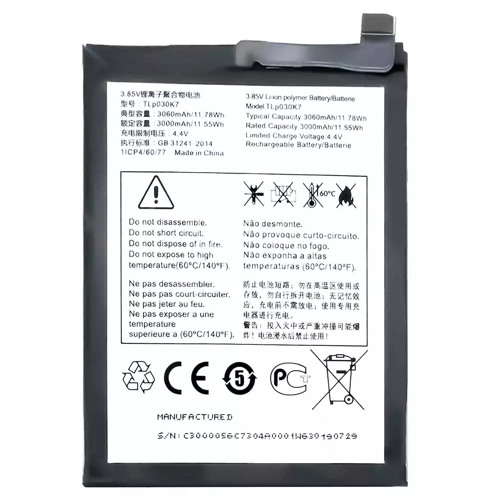 Batteri TLP030K7 til Alcatel 1s 2019/5024A/5024D/5024I/5024J/5024D_EEA/5024F/5024F_EEA