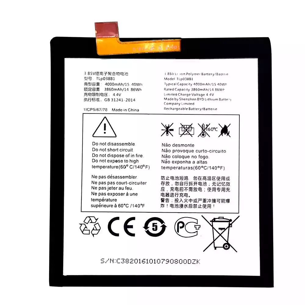 Batteri TLP038B1 til Alcatel A7-A7 LTE /OT-7071DX/OT-5090Y/OT-7071D