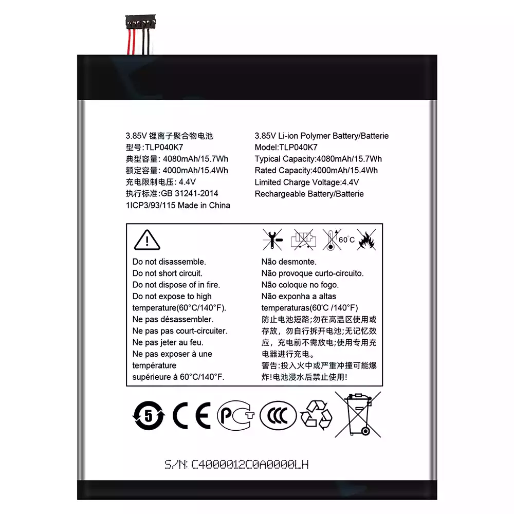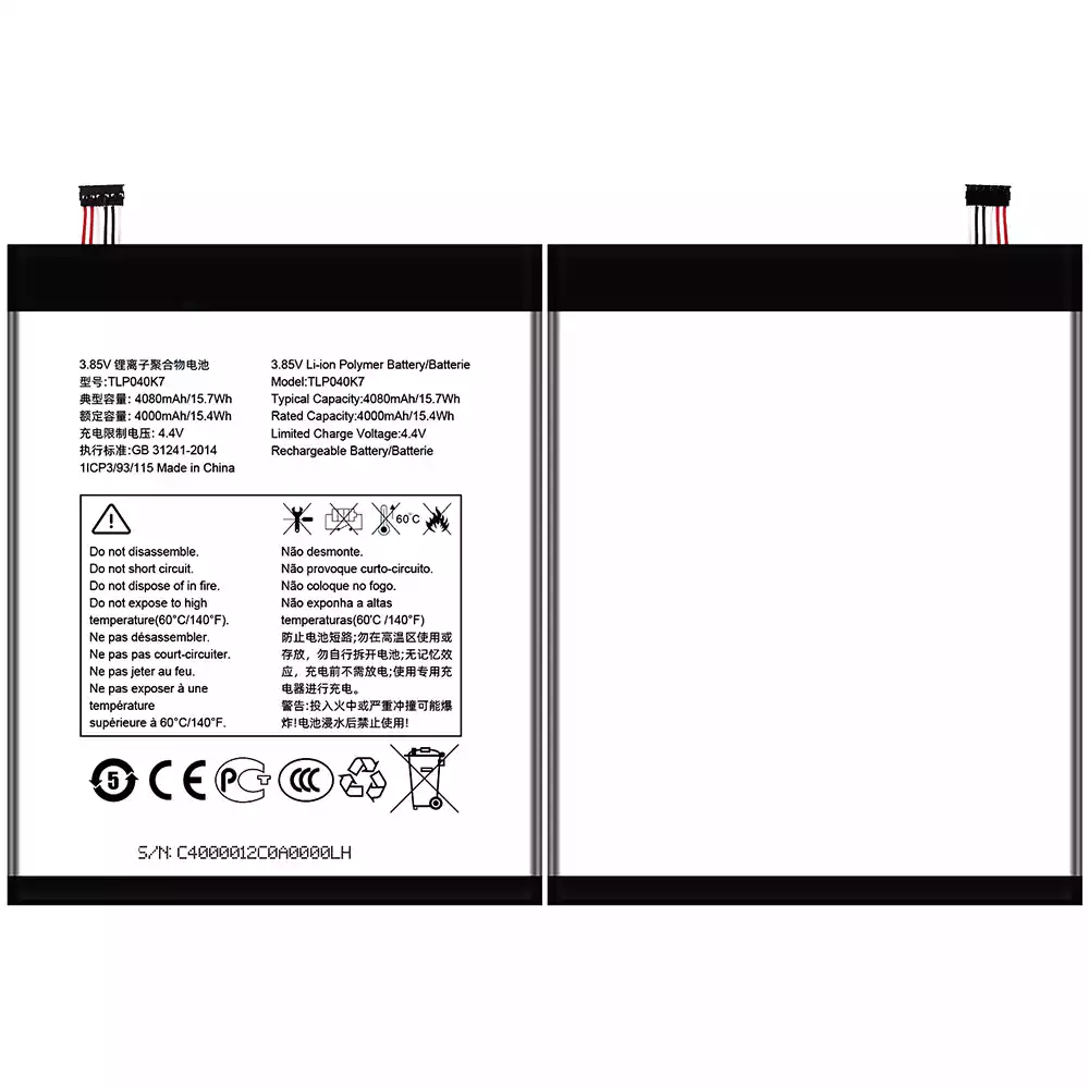 Batteri TLP040K7 til Alcatel A30 Tablet 4G LTE 9024W