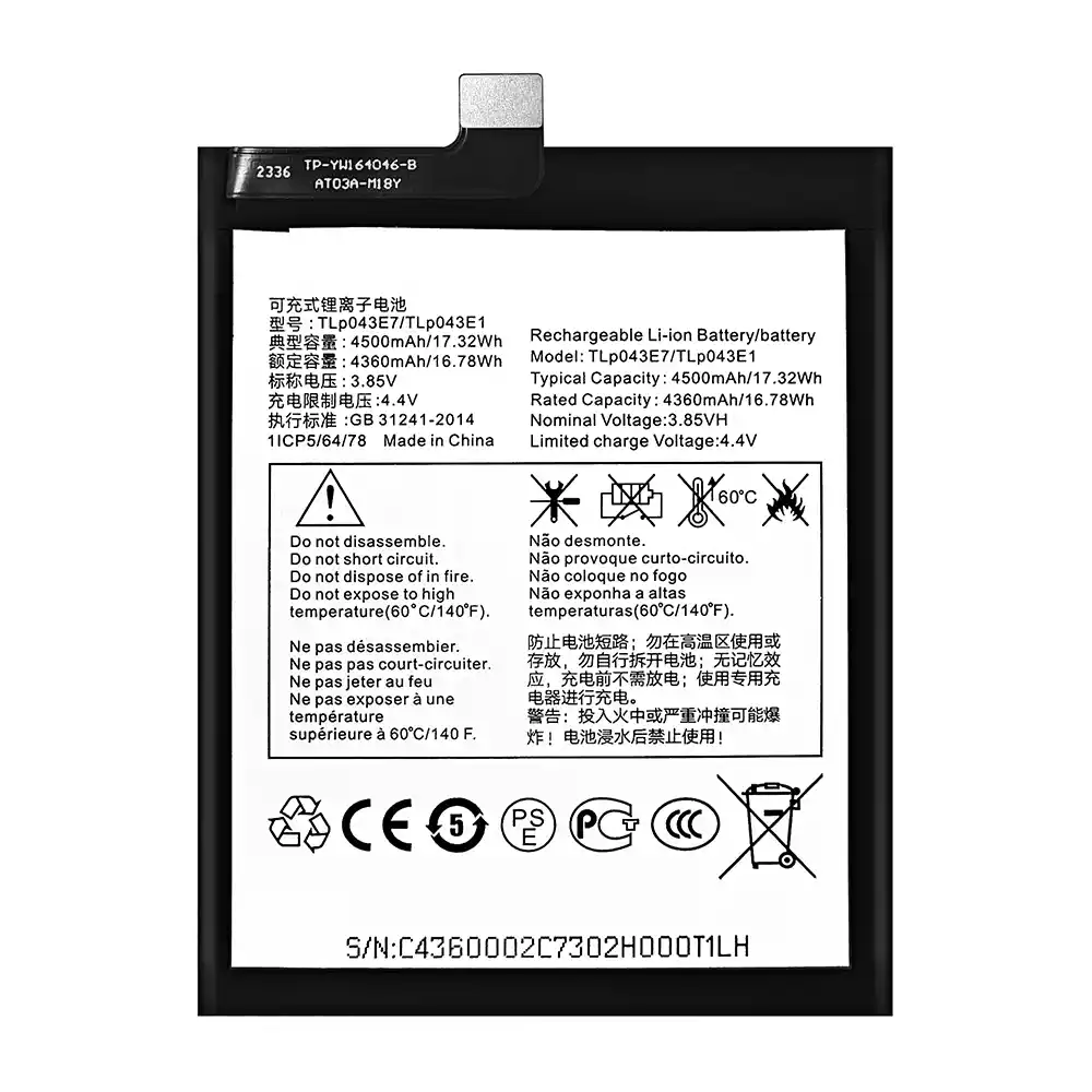 Batteri TLP043E7/TLP043E1 til Alcatel T-Mobile RevvI 5G/T790W/TCL 10 5G/T790Y/TCL 20 5G/ T781/TCL 4X 5G/T601DL